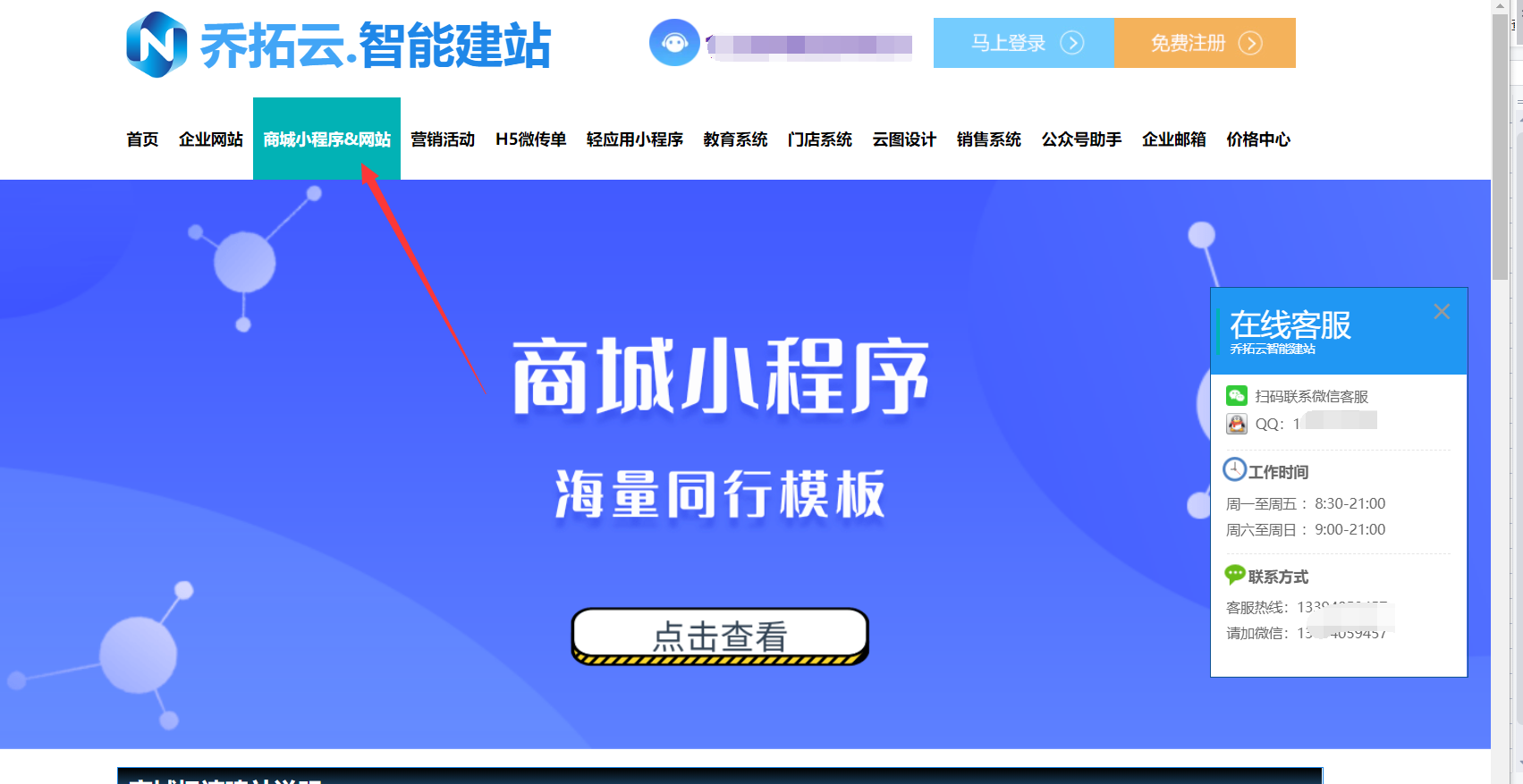 登录乔拓云后台,点击 “小程序模板”,按行业分类(如 “餐饮”“教培”)筛选,预览模板功能是否匹配核心需求(如餐饮需确认是否含点餐功能),避免盲目选择。