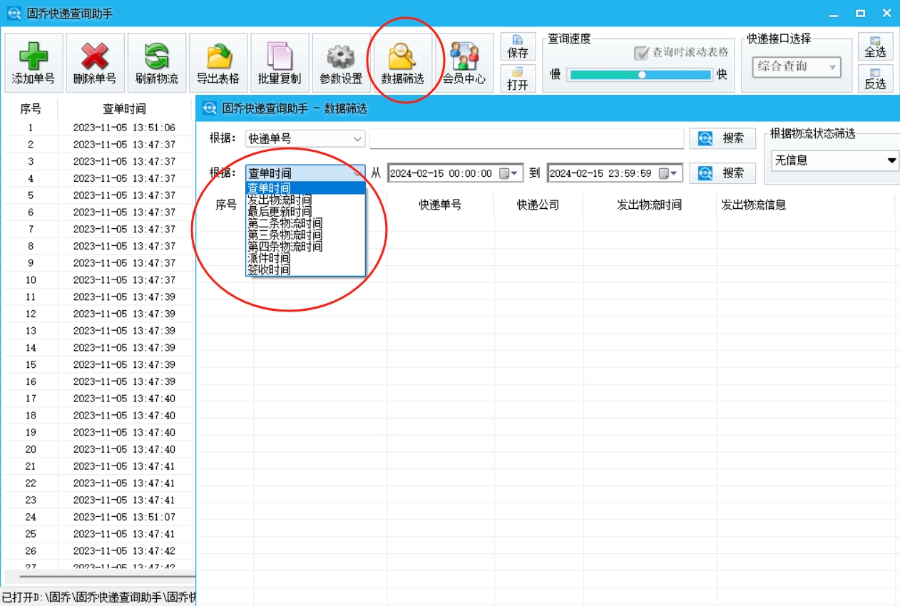 查询完成后,客服可以根据需求筛选数据:比如想优先处理 “异常件”,点击顶部 “数据筛选”,选择 “物流状态 - 异常件”,就能快速筛选出所有异常单号,直接联系快递或用户跟进;想整理 “已签收” 单号用于对账,筛选 “已签收” 状态即可。
