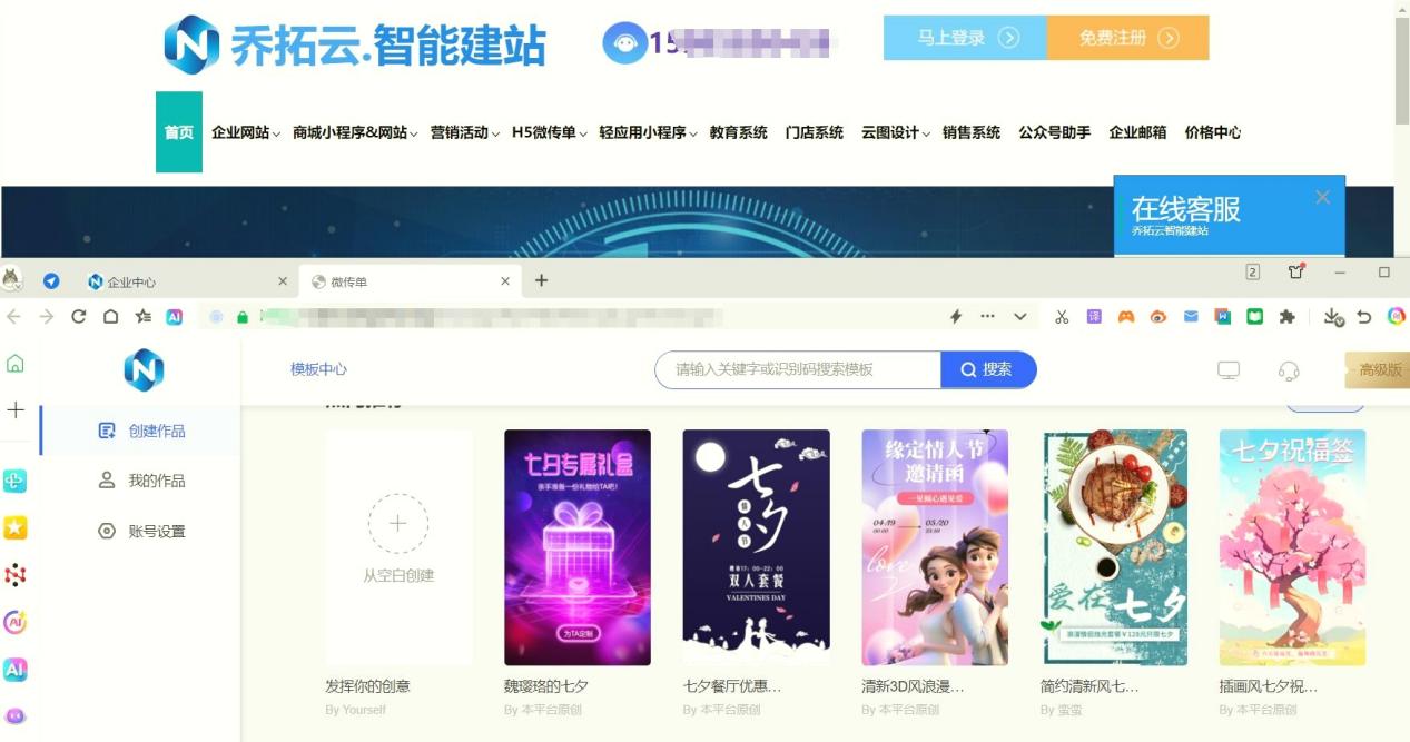 本次测评模拟“婚礼请柬”与“企业年会请柬”两大高频场景,需完成包含“主题视觉设计”“嘉宾信息填写”“出席确认”“分享传播”的全流程制作。核心考核维度包括:模板风格丰富度、自定义编辑灵活性、互动与统计功能、跨设备适配性及性价比,目标受众为筹备婚礼的个人用户、企业行政人员及活动策划者。 1.2 测评对象简介 乔拓云H5微传单设计平台:主打全场景H5制作的工具,电子请柬模板丰富且支持深度自定义,兼顾个人与企业场景需求。 固乔建站:模板资源多样的建站工具,提供各类电子请柬模板,主打快速套用与基础编辑功能。